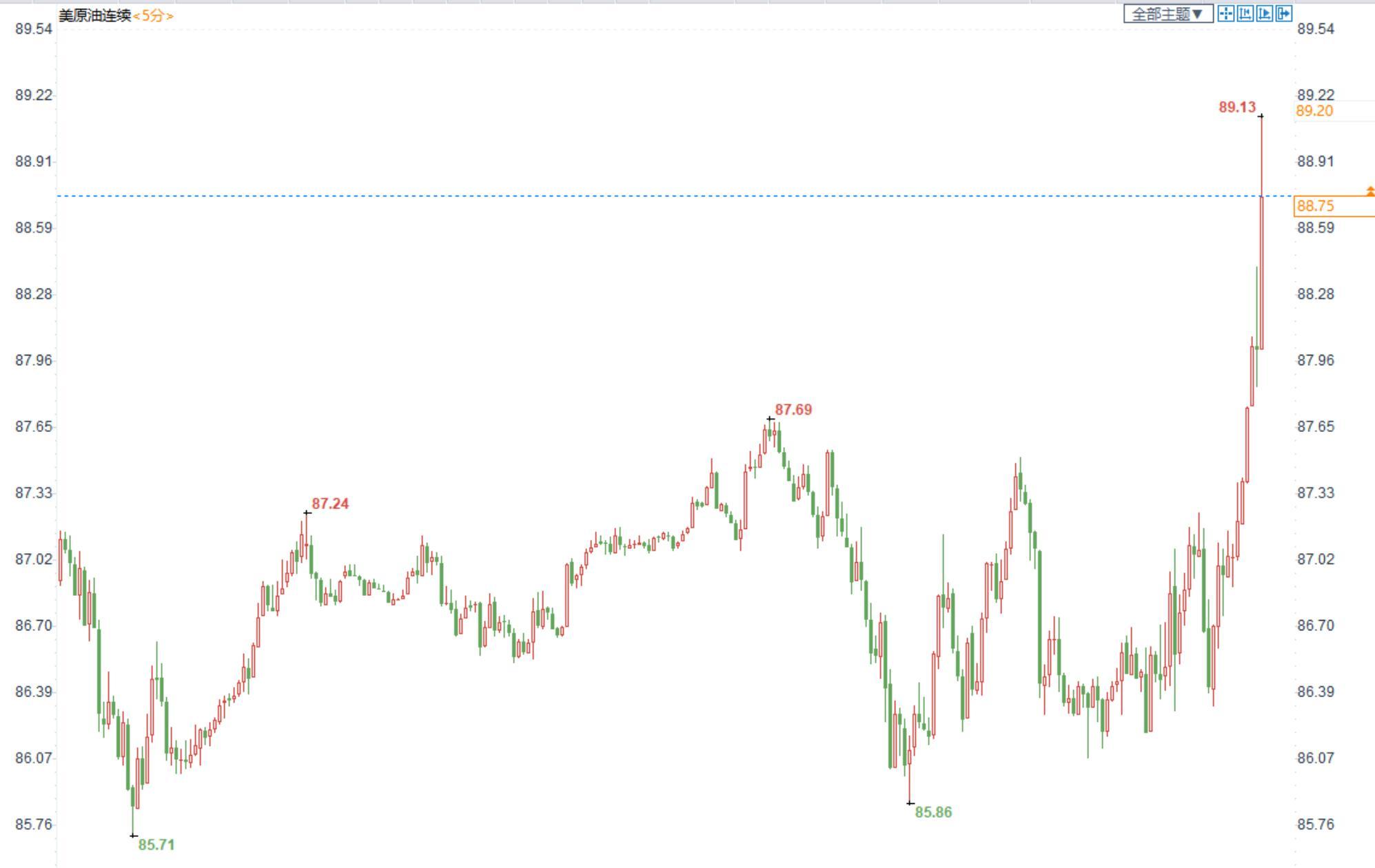 美国原油价格5分钟图显示