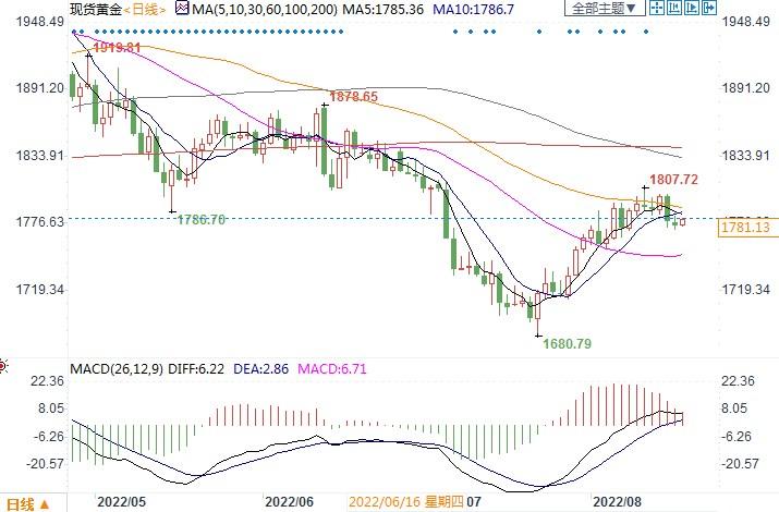 北7京时间8月17日15:32,现货黄金报1775.15美元/盎司