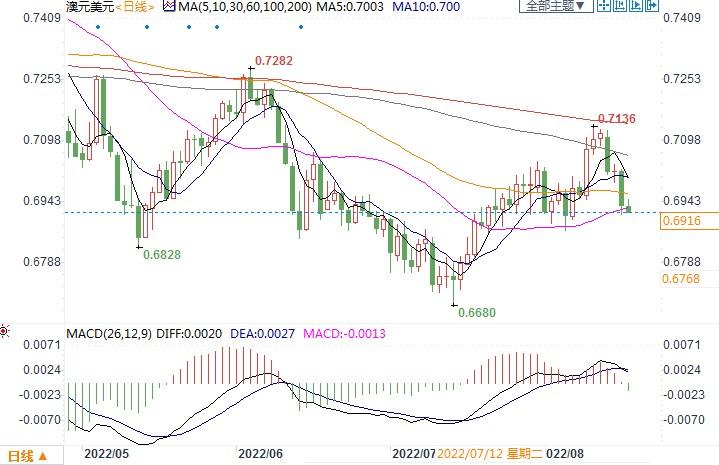 北京时间8月18日15:44 澳元兑美元 报 0.6920/21。