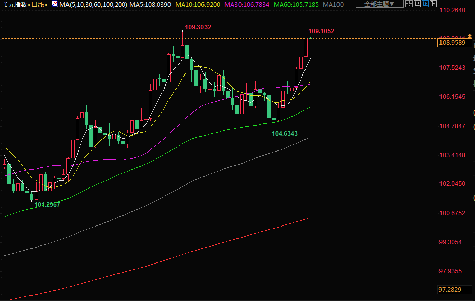 北京时间周二(8月23日)亚市早盘,美元指数交投于109附近,美元周一全线上涨,创五周高位至109.10,因几位美联储官员重申激进收紧货币政策的立场,欧元兑美元再次跌穿平价,投资者愈发担心美国和欧洲加息以遏制通胀的行动会削弱全球经济,因此远离风险较大资产。金价跌至近一个月最低;油价从盘中低点反弹,市场权衡沙特阿拉伯关于OPEC+可能减产的警告,以及核协议可能使受制裁的伊朗石油重返市场的可能性。