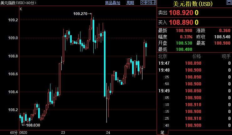 伦敦Caxton市场情报主管Michael Brown表示:“美联储主席鲍威尔可能在周五表现鹰派,”他并称他,美元指数有望突破7月创下的近20年高点109.30。