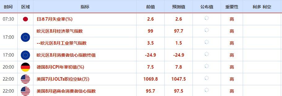 周二需要关注的大事件:欧盟外长会议举行,至8月31日;里奇蒙德联储主席巴尔金就美国通胀和经济发表讲话,纽约联储主席威廉姆斯就美国经济前景发表讲话。