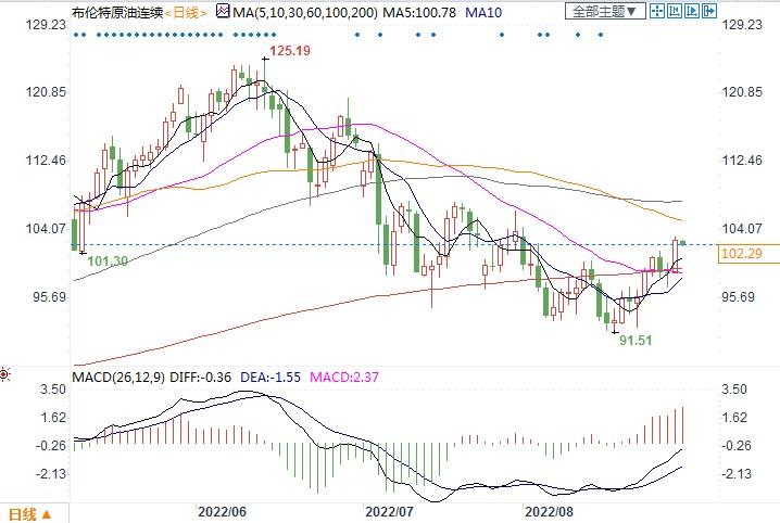 北京时间8月30日13:41 布伦特原油 报 102.29美元/桶