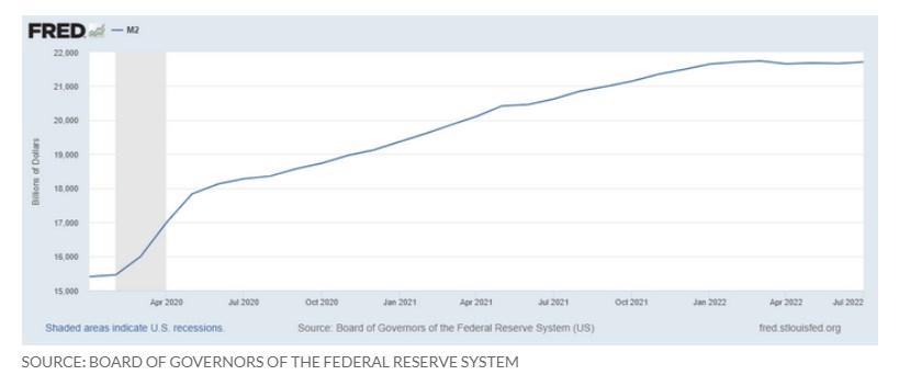 M2是货币供应量的一个指标,包括现金、支票和储蓄存款,以及零售货币共同基金的份额。M2被广泛用作衡量流通货币数量的指标,自2020年2月疫情以来,货币供应量出现了“前所未有的增长”,自2022年2月以来一直停滞不前。(见下表)