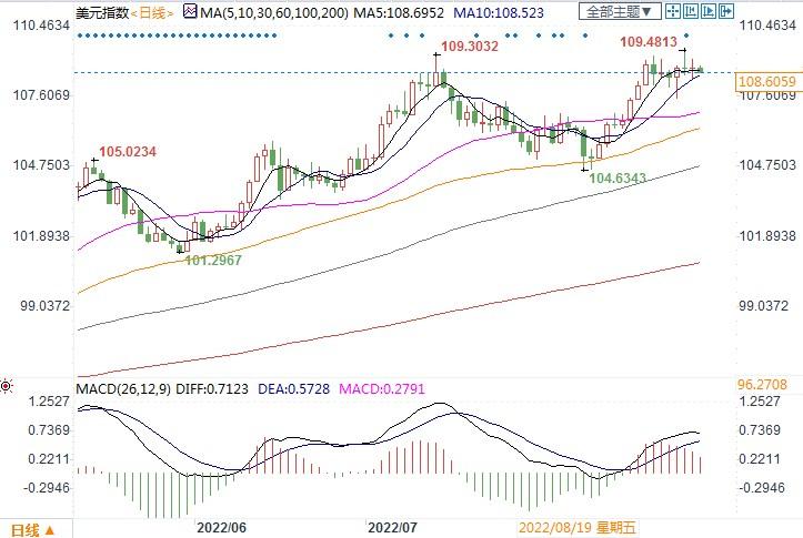 北京时间8月31日14:04, 美元指数报108.62。