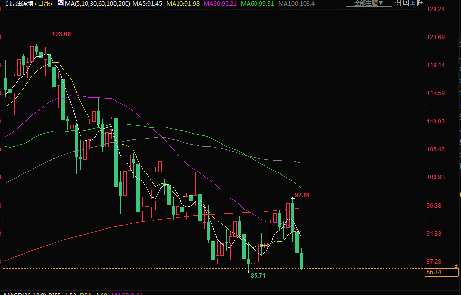 商品收盘情况:布伦特原油期货下跌3.4%,结算价报每桶92.36美元。美国原油期货下跌3.3%,报每桶86.61美元;美国期金收低1%,结算价报1709.3美元。