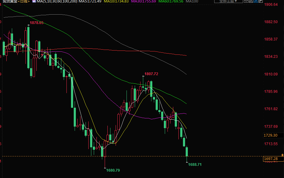 金价周四跌破1700美元的关键水平,为7月以来首次,因美元上涨和对激进加息的预期削弱了黄金的吸引力。道明证券的商品策略师Daniel Ghali称:”如果美国联邦储备理事会(美联储/FED)坚持其通胀使命并保持高利率,甚至在经济衰退时也不降息,对黄金来说不是好兆头。如果黄金跌破1675美元的区间,我们预计会出现大量卖压。”