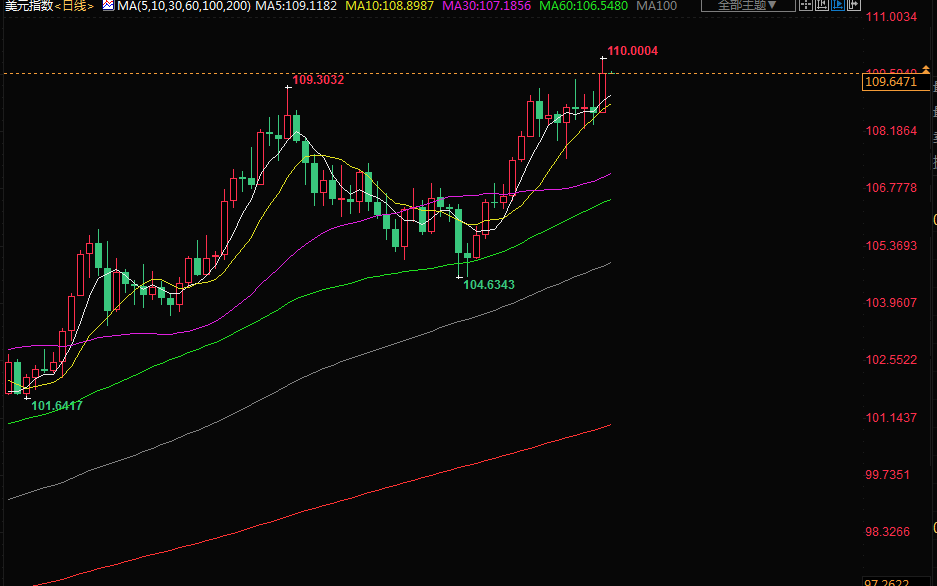 美元指数上涨0.671%,报109.59,稍早曾触及109.99的2002年6月以来最高。在稳健的经济数据支持下,对美联储在9月20-21日会议上连续第三次加息75个基点的预期正在上升,联邦基金利率期货市场盘尾显示,加息75个基点的可能性约为77.1%。 这帮助推动指标10年期美国国债收益率达到3.297%的两个多月最高。