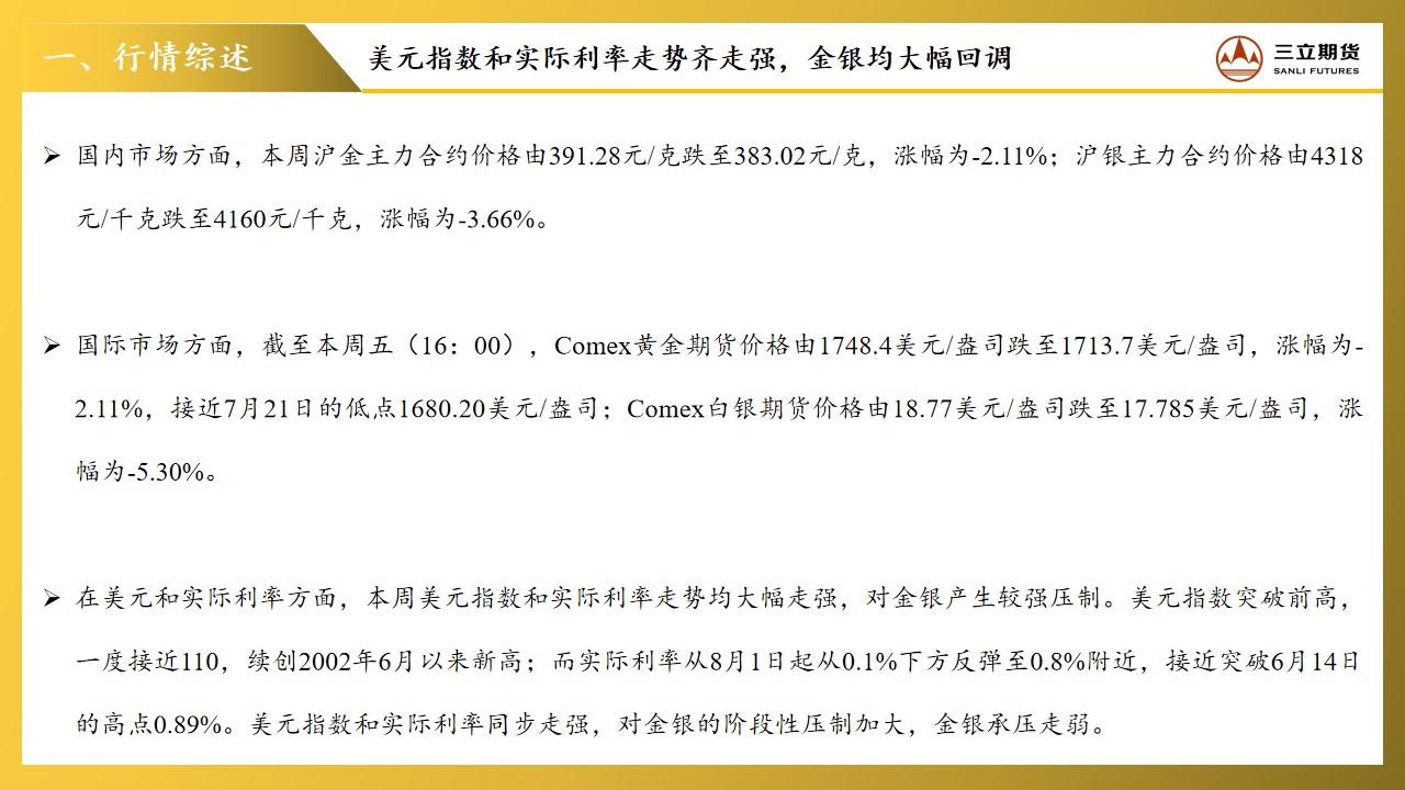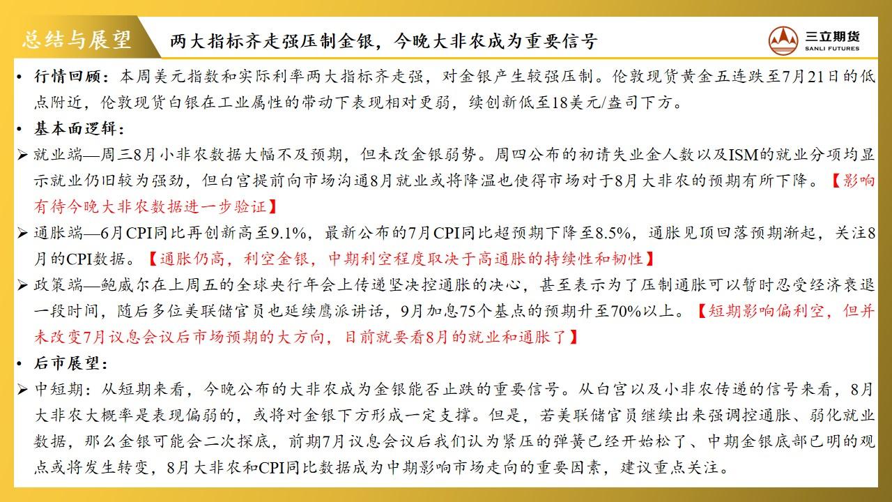 三立期货贵金属周报:两大指标齐走强压制金银,今晚大非农成重要信号 2022-09-02 20:02 三立期货公司授权文本由“专注期货开户交易及专业行情分析资讯网站”:【一期货 www.1qh.cn】转发