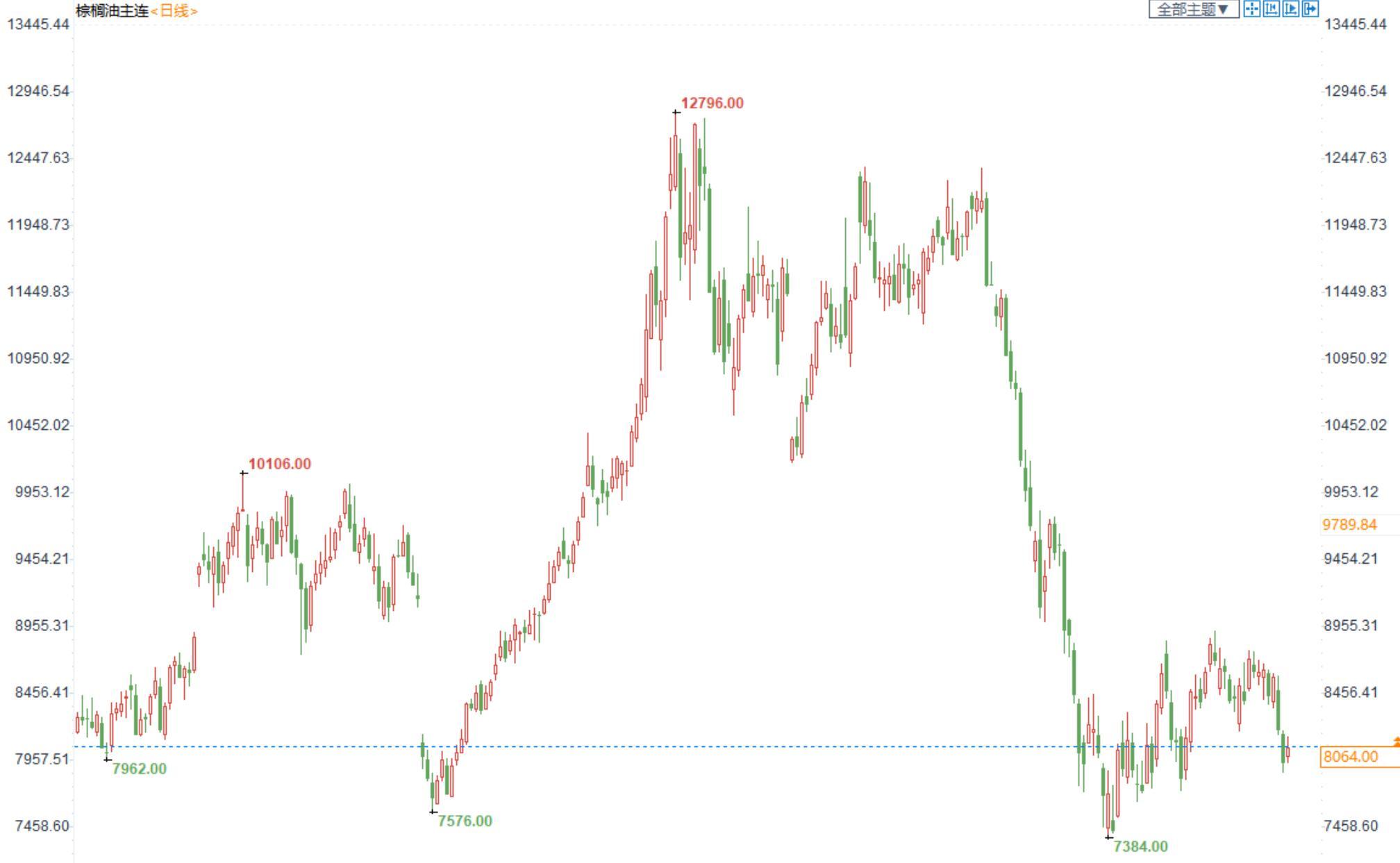 棕榈油2301合约日内涨1.49%,收盘8064元/吨;广州市场棕榈油8640元/吨。