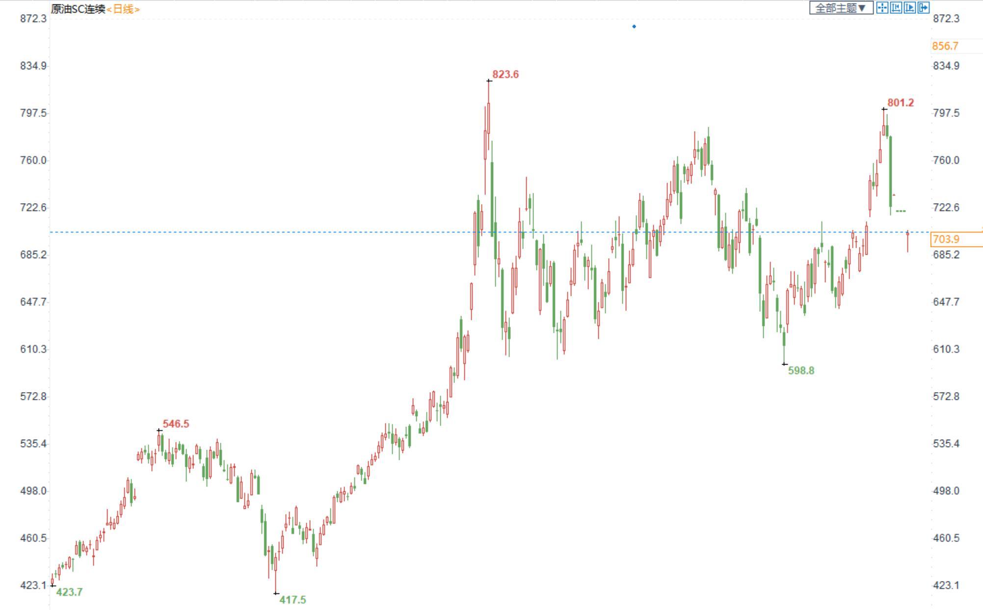 期货市场,布油目前在92美元附近震荡整理,国内SC2210合约收盘价703.9,小幅收涨。