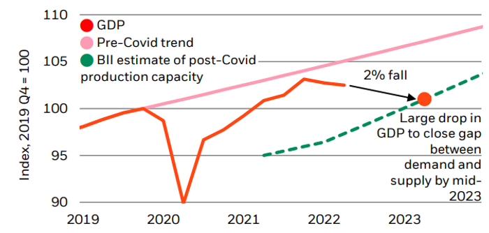 贝莱德分析师认为,问题在于,加息并不能解决最大的问题:低产能(见下图绿色虚线)。