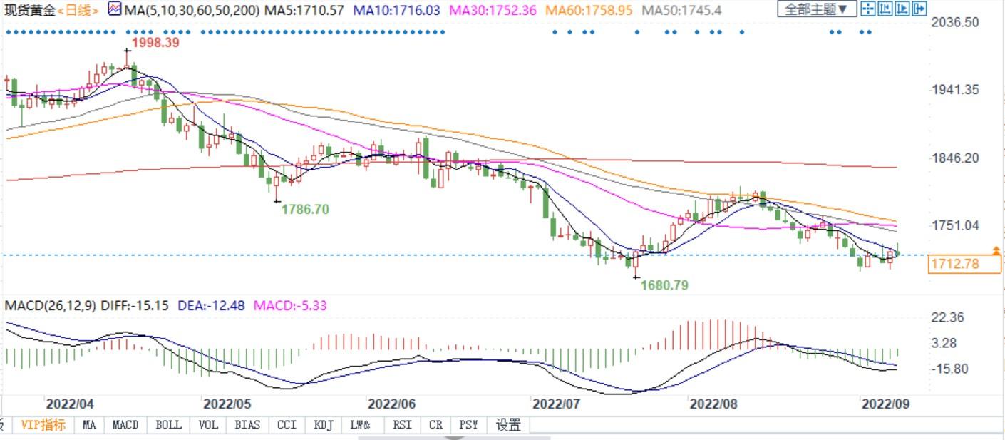 北京时间9月8日21:36,现货黄金报1711.94美元/盎司。