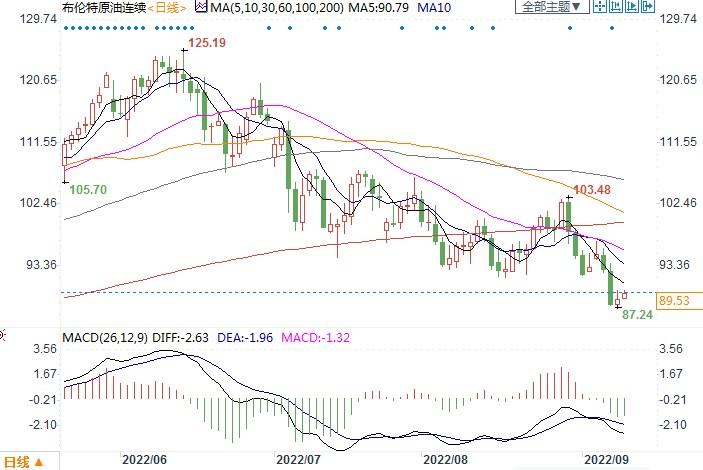 北京时间9月9日13:01, 布伦特原油连续报89.53美元/桶