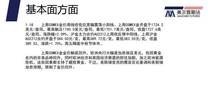 美尔雅期货:欧洲经济衰退预期大增,英国政局不稳,金价触底回升