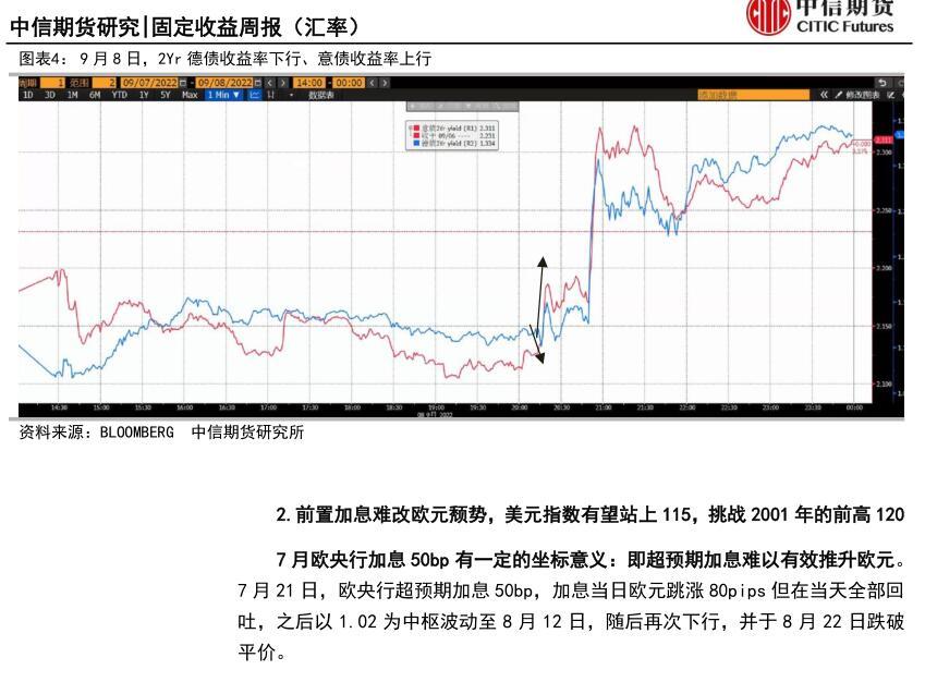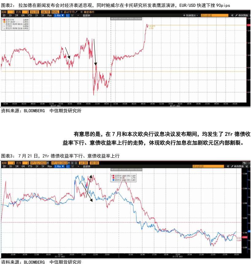 第二,有意思的是,在 7 月和本次欧央行议息决议发布期间,均发生了 2Yr 德债收益率下行、意债收益率上行的走势,体现欧央行加息在加剧欧元区内部割裂;