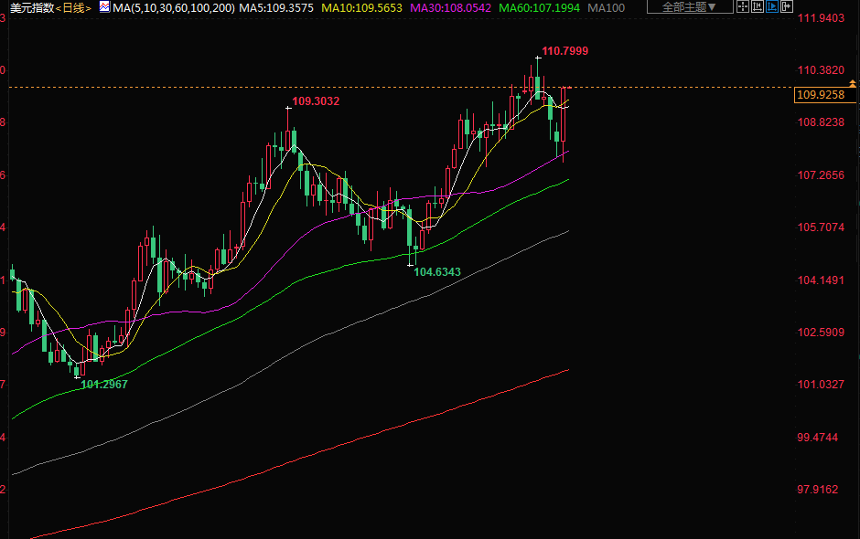 美元指数大涨1.5%,报109.85点,录得2020年3月以来的最大单日百分比涨幅,但仍低于上周创下的110.79点的20年来最高点位。通胀数据公布后,该指数由跌转升。