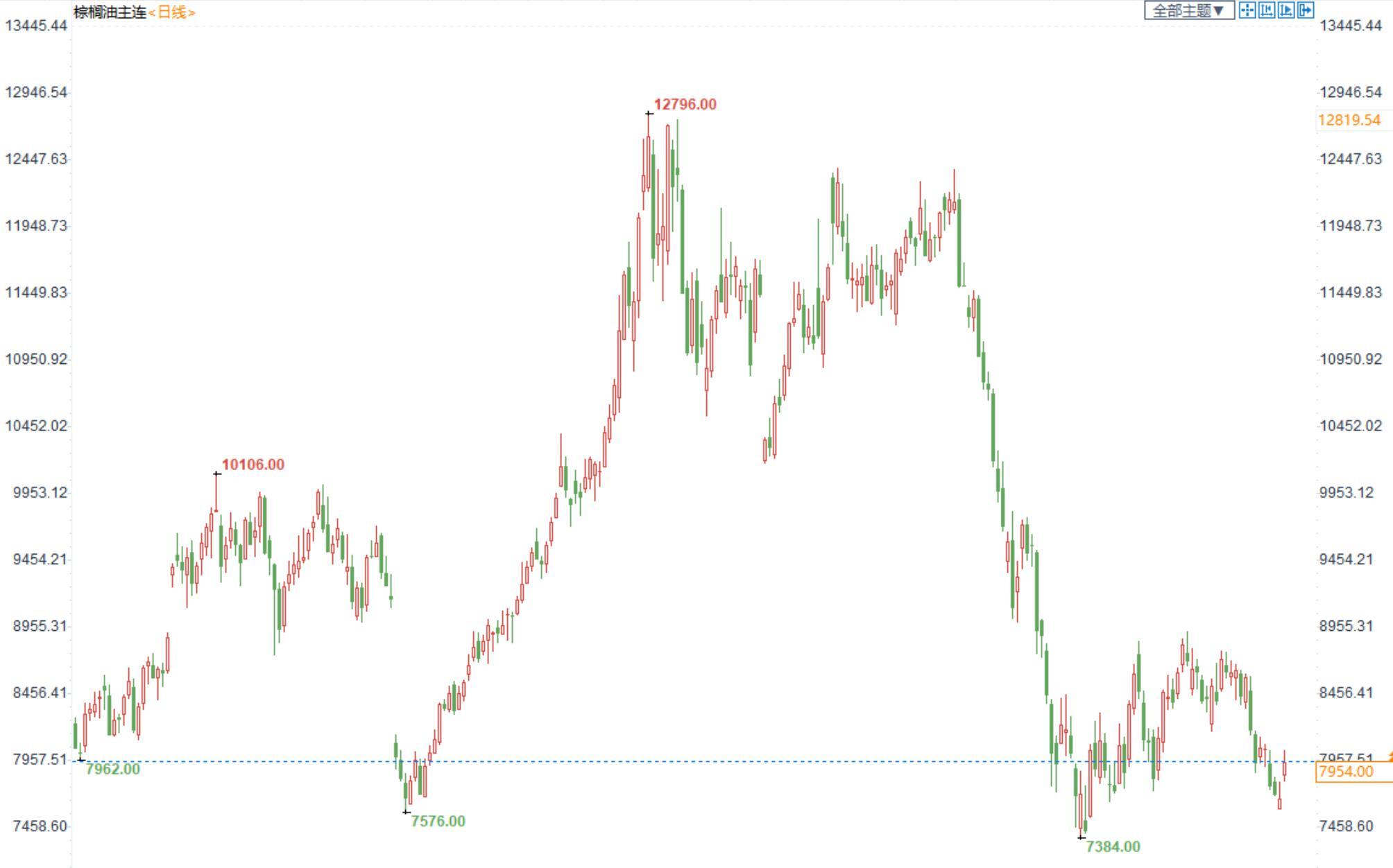 棕榈油2301合约日内涨3.51%,收盘7954元/吨;广州市场棕榈油8330元/吨。