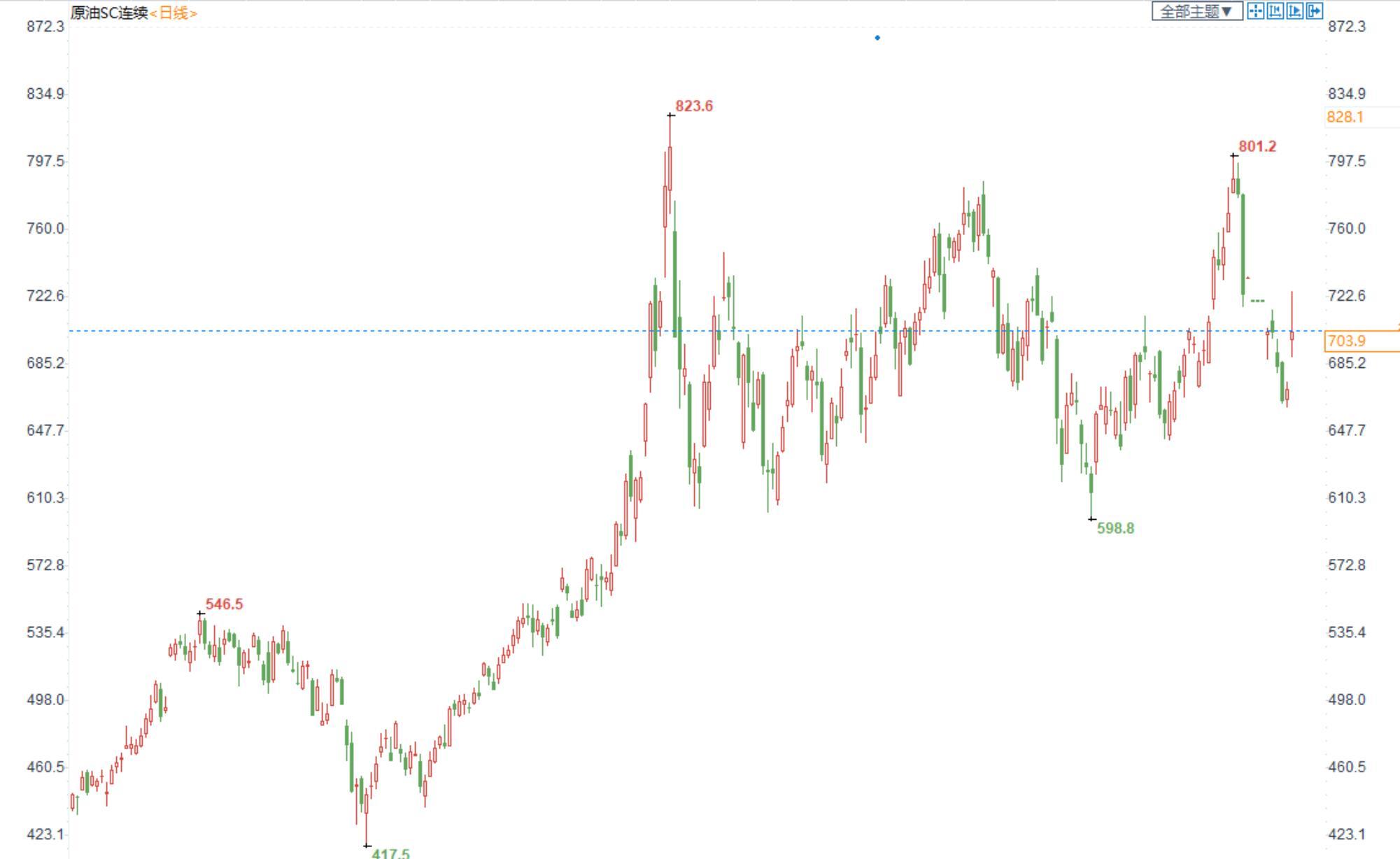 期货市场,布油目前在95美元附近震荡整理,原油市场连续反弹;国内SC2211合约收盘价649.3,大幅收涨。