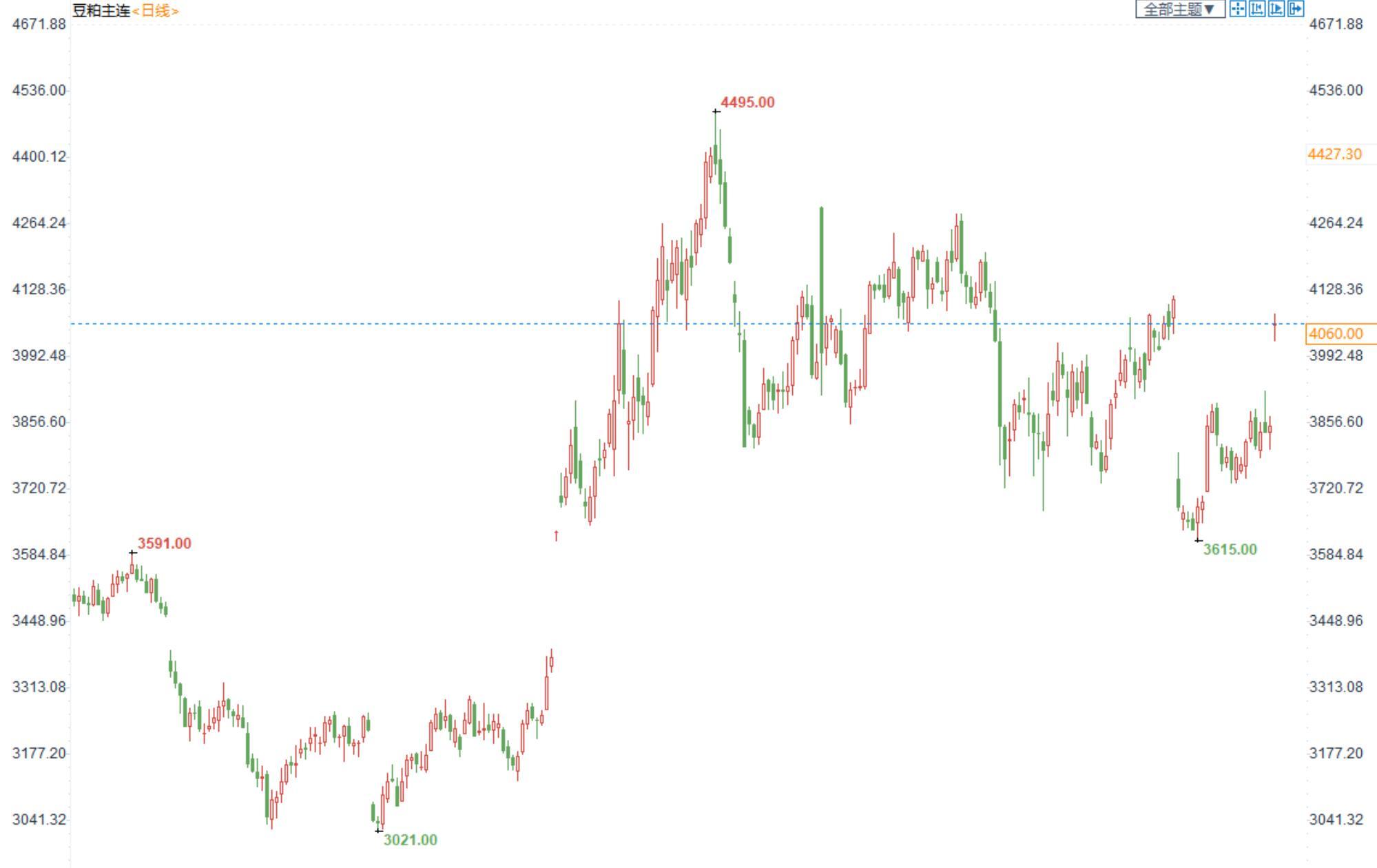豆粕2301合约日内涨5.40%,收盘价4060元/吨,现货张家港43%蛋白豆粕4815元/吨。