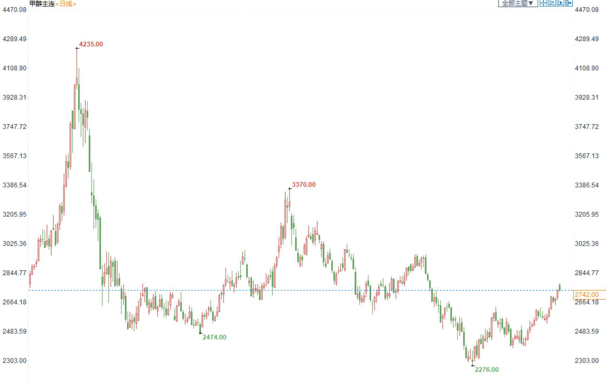 期货市场,甲醇2301合约小幅收涨,收盘价2743。江苏现货报价2715-2735,市场成交一般。