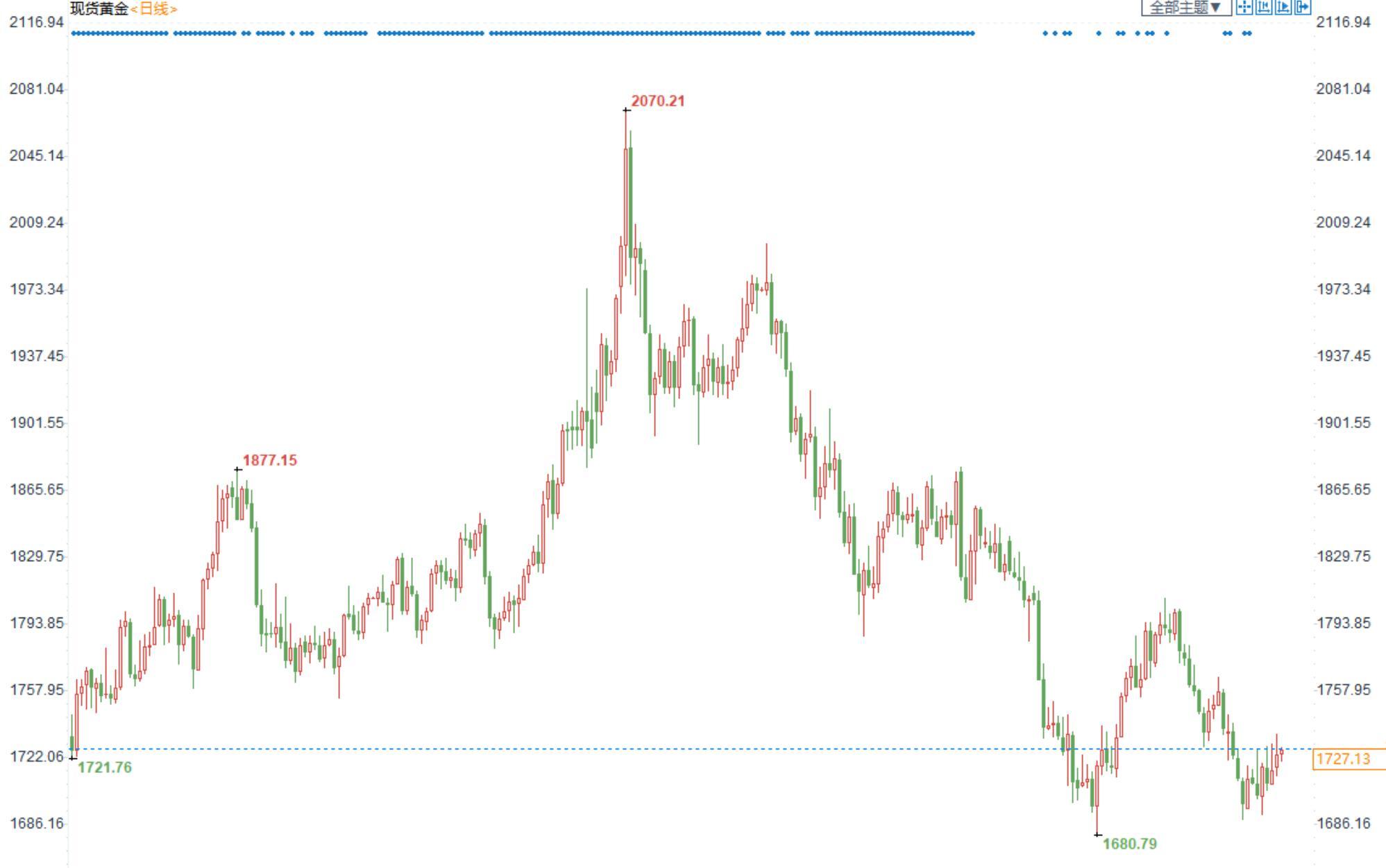 【今日行情】金银均收涨。AU2212收盘价为389.66,收涨0.40%;AG2212收盘价为4466,收涨4.69%。美元指数高位回调至108,短期对金银的压制减弱;十年期美债收益率仍处于3.3%上方,实际利率端仍强于通胀预期端,突破前高至0.9%上方,创逾三年新高,对金银的压制仍较强,金银趋势性上行的上方压力仍较大。