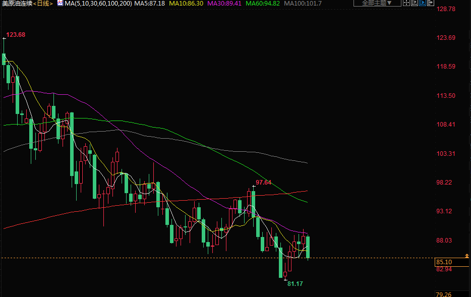 商品收盘情况:布伦特原油期货下跌3.5%,结算价报每桶90.84美元,美国原油期货下跌3.8%,收报85.10美元;美国期金收低1.9%,结算价报1677.30美元。