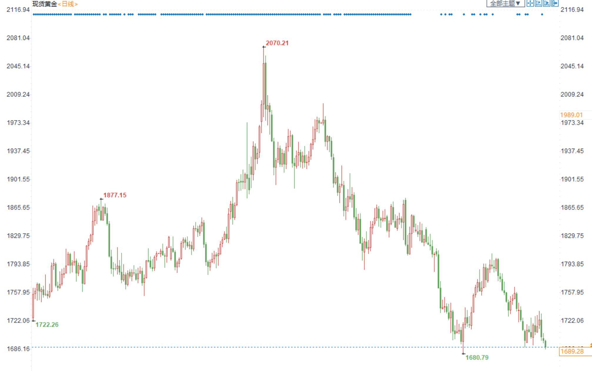 【今日行情】金银均收跌。AU2212收盘价为385.24,收跌0.60%;AG2212收盘价为4399,收跌0.18%。美元指数反弹重回109上方,短期对金银的压制增强;十年期美债收益率维持在3.43%附近,接近突破6月中旬的高点3.49%,实际利率端仍强于通胀预期端,突破前高至0.9%上方,创逾三年新高,对金银的压制仍较强,短期金银上方压力增大。