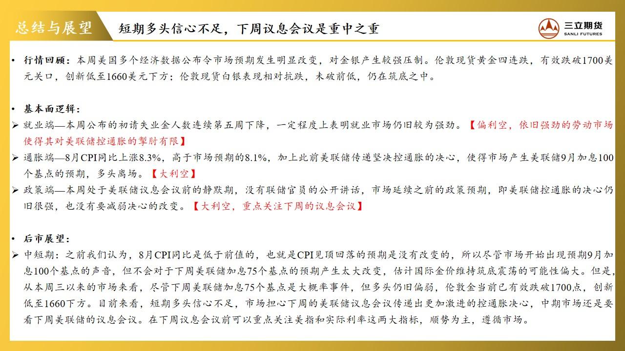 三立期货贵金属周报:短期多头信心不足,下周FED会议重中之重