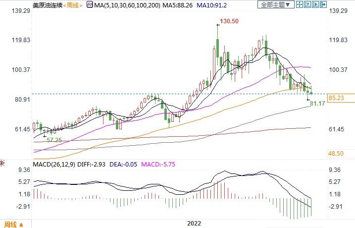 截至发稿,本周NYMEX原油期货下跌约1.06%至85.30美元/桶;ICE布伦特原油期货下跌约2.7%至89.90美元/桶。两市都呈现连续第三周下跌。
