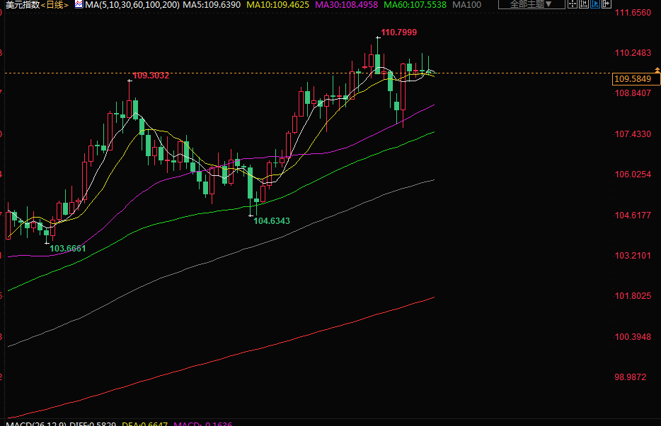 美元指数上涨0.1%,报109.62,离9月7日触及的20年高位110.79不远。年初以来,美元指数已经急升14.7%,势将创下38年来最大年度百分比涨幅。