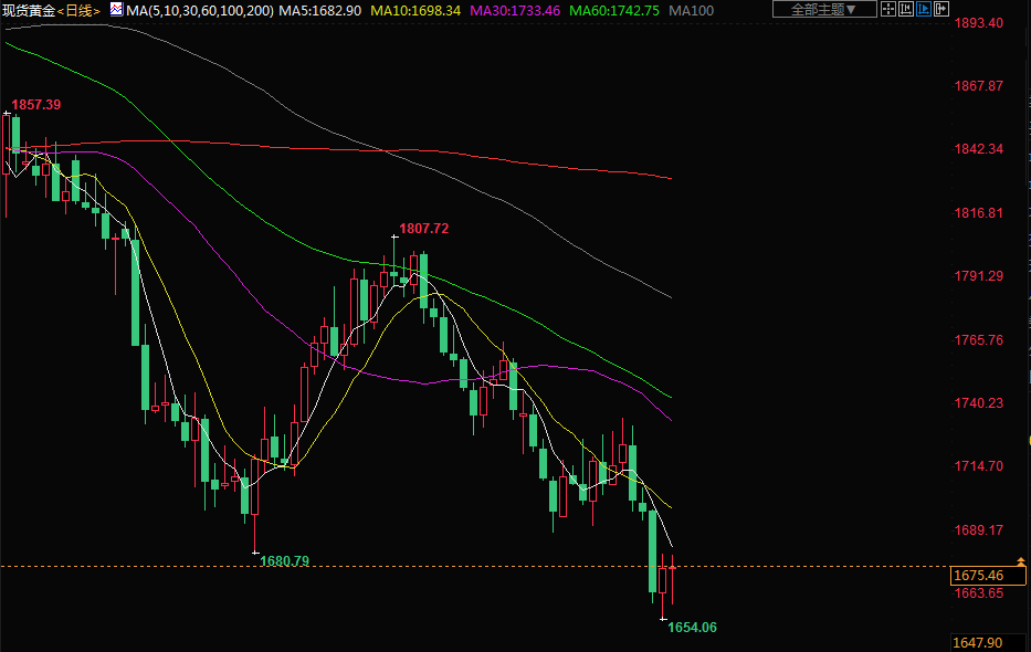 金价周一走弱,向上周五创下的29个月低点回落,美元和美债收益率走强,因预计美联储本周开会时将大幅加息。RJO Futures的高级市场策略师Daniel Pavilonis说:“(黄金)仍在低点附近徘徊,主要是因为对美联储周三的预期。”他补充说,国债收益率上升也对金价构成压力。