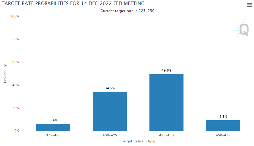 新公布的预测还将清楚表明,美联储政策制定者对本轮加息周期利率峰值的看法。交易员现在预计,联邦基金利率区间年底将升至4.25%-4.50%,比现有水平高出2个百分点,创出2007年底以来新高。