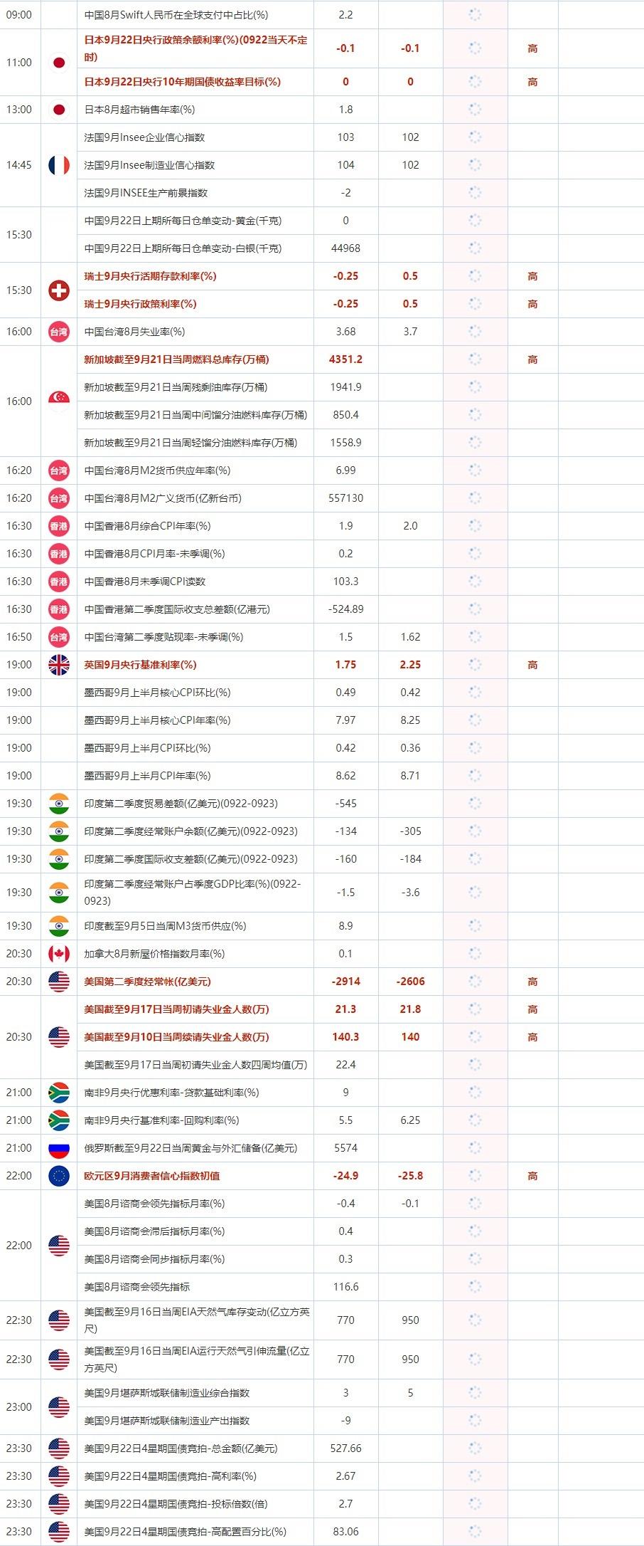 后续及时更新的财历数据请关注:【汇通网9月22日财经日历】