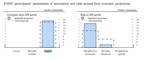 对年底联邦基金利率水平的预测暗示,美联储在2022年剩下的两次政策会议上将再加息125个基点,这一水平意味着将再进行一次75个基点的加息。