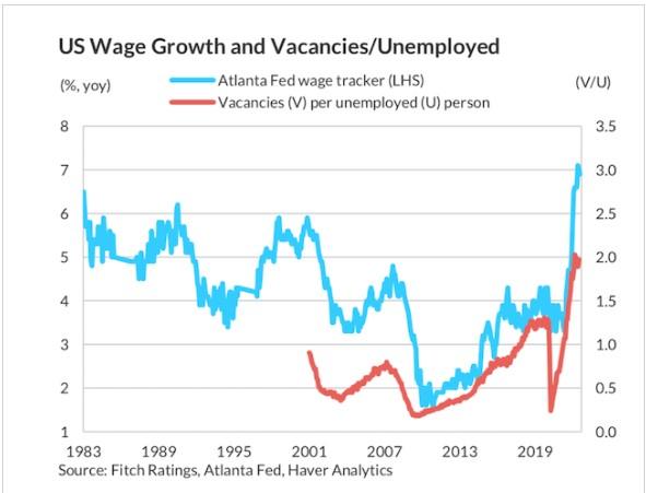 库尔顿:美联储在描述经济时,反复强调的一点是劳动力市场的失衡。劳动力需求仍然旺盛,8月新增非农就业人口32万,而每名失业者对应的空缺岗位数却创历史新高,这就对薪资形成压力。
