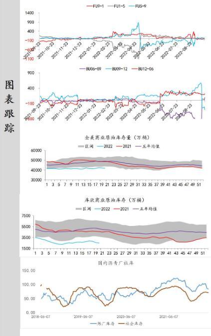 供应端:美国能源信息署数据显示,截止2022年9月16日当周,包括战略储备在内的美国原油库存总量8.57932亿桶,比前一周下降575.8万桶;美国商业原油库存量4.30774亿桶,比前一周增长114.1万桶;美国汽油库存总量2.1461亿桶,比前一周上升157万桶;馏分油库存量为1.1725亿桶,比前一周增长123万桶。商业原油库存比去年同期高4.06%,比过去五年同期低1.99%;汽油库存比去年同期低3.16%,比过去五年同期低约5.01%;馏份油库存比去年同期低9.35%,比过去五年同期低19.34%。