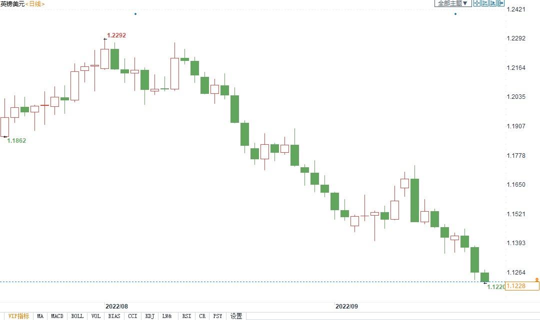 北京时间9月22日14:52,英镑兑美元报1.1231/33。