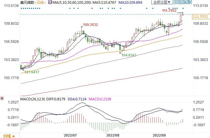 北京时间9月22日13:51, 美元指数,报 111.5552