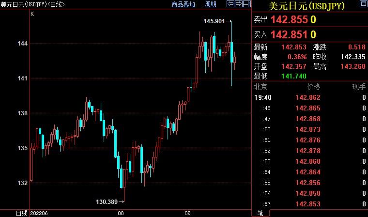 但唯独例外的是日元,日本政府和日本央行进入市场买入日元换取美元,进行了自1998年6月以来的首次外汇干预,美元兑日元自1998年8月中旬以来高位145.895回落,累计波动逾550点,目前微跌0.08%至142.854。
