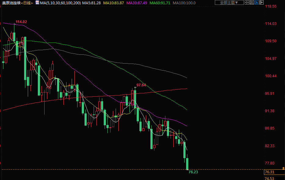 商品收盘情况:11月布伦特原油期货结算价下跌2.4%,报每桶84.06美元,跌穿了1月14日触及的低位。11月美国原油期货下跌2.3%,报每桶76.71美元,为1月6日以来最低。美国期金下跌1.3%,结算价报1633.40美元。