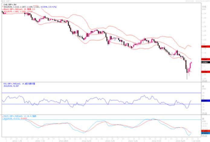 英镑在周四的震荡交易中大幅上涨,从周一创下的纪录低点回升,此前英国央行连续第二天购买英债以稳定金融市场。英镑创下了自2020年3月以来的最大单日百分比涨幅。在报道称英国首相特拉斯周五将同英国预算责任办公室(OBR)负责人紧急会晤后,英镑扩大涨幅,纽约尾盘报1.1084美元,大涨1.8%。在三天前触及1.0327美元的历史低点后,英镑兑美元已经回升了7%以上。英镑回升部分因为英国央行采取的行动。周四,英国央行购买了14.15亿英镑(15.5亿美元)期限超过20年的英国公债,这项旨在稳定市场的数百亿英镑的计划已经实施了两天。有份指出,英国央行的举措所带来的英镑上涨是不可持续的。任何时候央行在进行临时干预计划时,市场肯定会对此进行测试,看看央行是否会继续这样做。一旦央行停手,经济基础面将继续主宰着货币汇率的走势。日图继续显示英镑处于反弹修正之中,但仍受压于20日均线之下,布林带中轨1.13附近构成强阻力位。4小时图中的各类技术指标极度上扬,呈现反弹欲求较为旺盛。日内留意上方1.1220-1.1300区域的阻力情况,若突破,则英镑兑美元有望进一步上攻。若受阻则会回踩寻求震荡整理的区间。