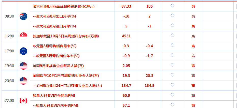 周三公布的ADP全国就业报告显示,9月民间就业岗位增加了20.8万个,高于路透调查的经济学家的平均预测20万个,另外,供应管理协会(ISM)公布的美国非制造业PMI数据略高于预期。