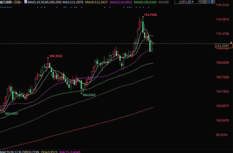 北京时间周四(10月6日)亚市早盘,美元指数交投于111.18附近;美元周三从近期的疲软中反弹,因为投资者认为美联储对利率的激进立场可能不会改变;金价下滑超过1%,受美元和美国国债收益率跳升的影响,即将发布的美国就业数据可能影响美联储的加息路径;油价上涨近2%触及三周最高,此前OPEC+同意进行2020年新冠疫情以来最大幅度的减产,尽管市场吃紧且美国和其他国家反对这么做,美国上周原油和成品油库存均下降,也提振了油价。