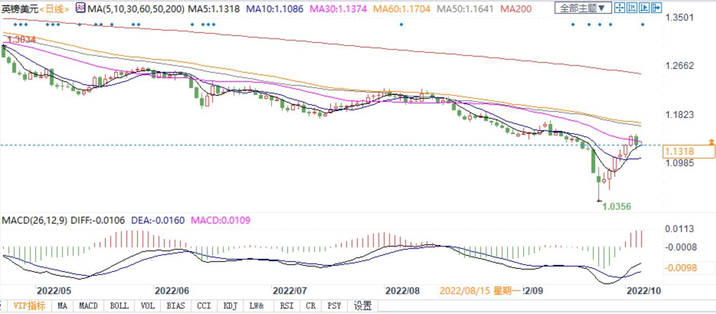 北京时间10月6日14:58,英镑兑美元报1.1316/18。