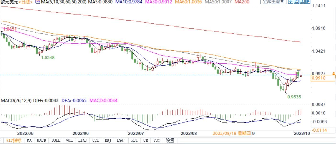 欧元兑美元的2022年低点在9月28日达到0.9535,但全球风险情绪的改善缓和了对避险美元的需求,引发了获利了结和反弹。