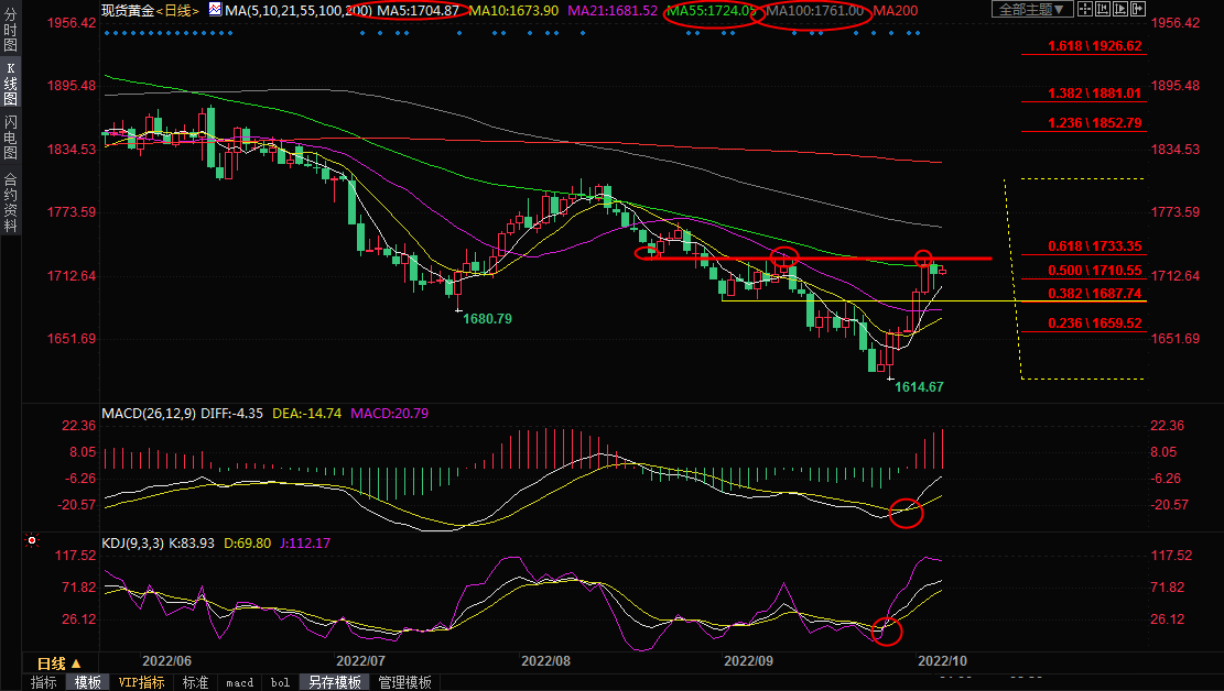 短线继续关注55日均线1724附近阻力,若能顶破该阻力,则有望打开新的上涨空间,上方进一步较强的阻力在100日均线1762附近。