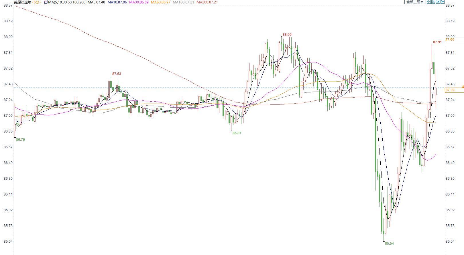 美国原油价格5分钟图显示