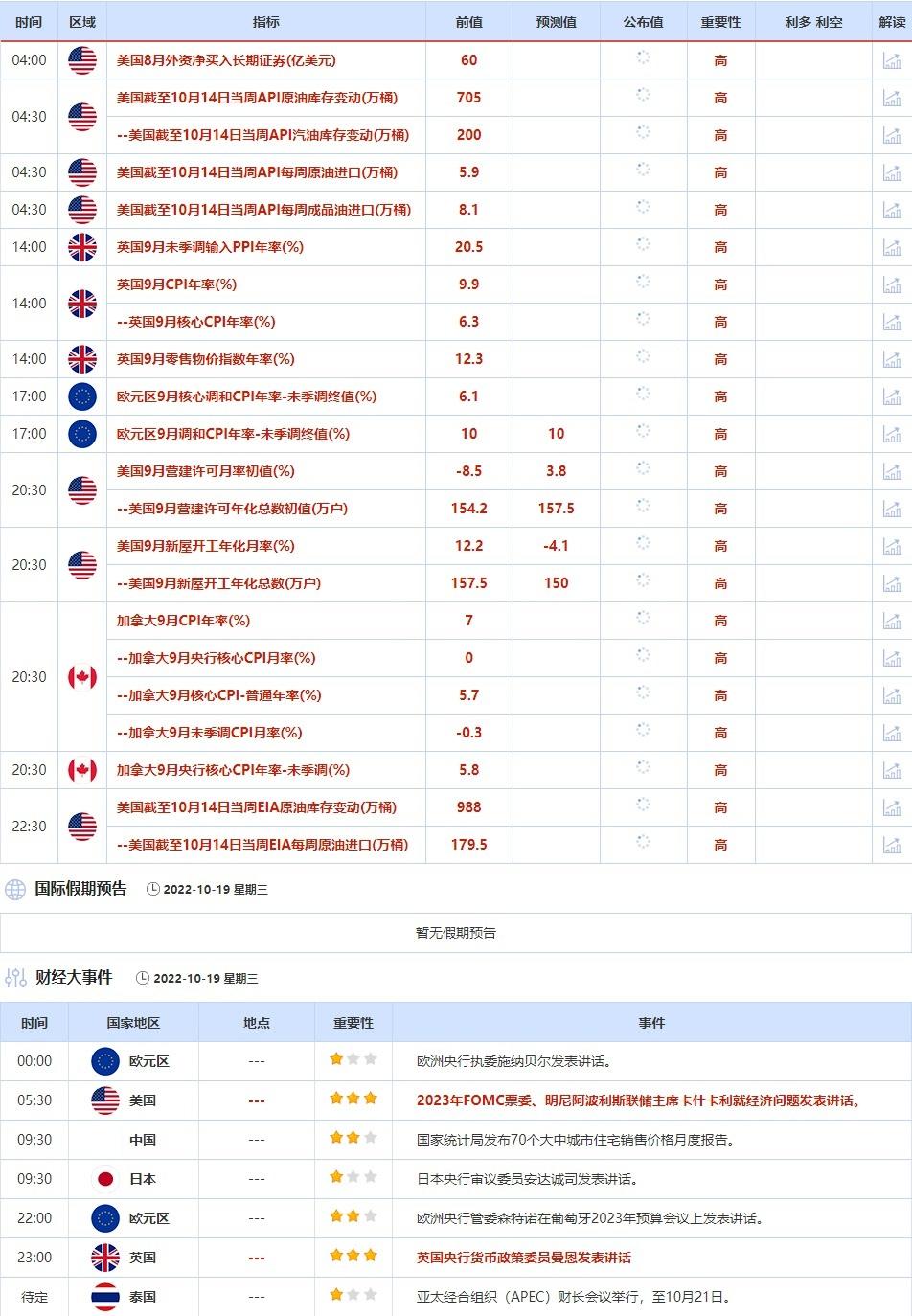 ③10月19日(周三)关键字:英国9月CPI,英国央行货币政策委员曼恩