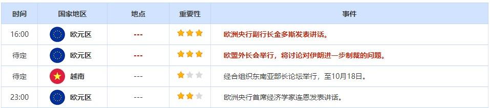 ①10月17日(周一)关键字:欧洲央行副行长金多斯,欧盟外长会议
